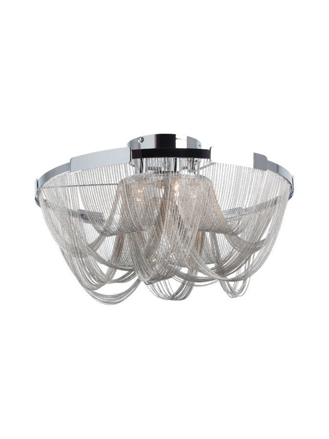 Näyttävä ja moderni plafondi koostuu kerroksittain asetetuista metalliketjuista ja metallikehyksestä. Valaisimen materiaali on metallia ja valonlähde on 3 x E14, max. 40 W. Polttimot eivät sisälly pakkaukseen. Valaisimen halkaisija on 40 cm ja korkeus 38 cm. Valaisimessa on sokeripalakytkentä.