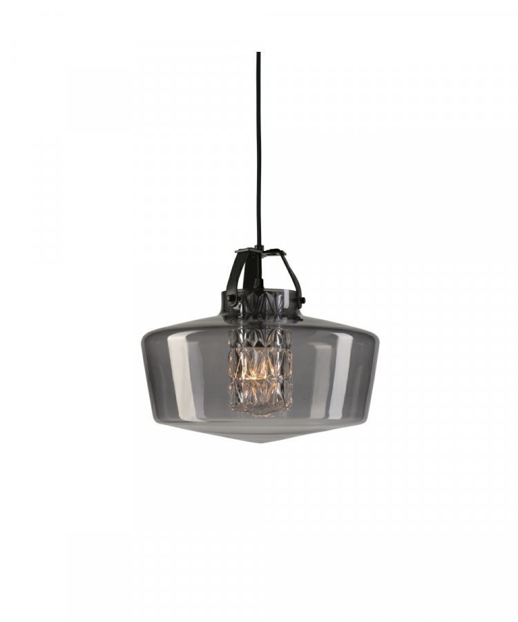 Design: Design By Us Konsepti: Design by Usin Addicted To Us on koristeellinen ja tyylikäs riippuvalaisin, jonka ainutlaatuisuus on mielenkiintoisissa materiaalivalinnoissa. Riippuvalaisin on valmistettu savuisesta käsin puhalletusta lasista ja valaisimen keskellä on ihana, särmikäs, kirkas lasikeskus, joka ympäröi polttimoa. Riippuvalaisin on saatavilla kahtena eri versiona: messinkisenä konjakinpunaisella nahalla varustettuna sekä mustalakattuna kromina, jota koristaa musta nahka. Lasin ja nahan välinen kontrasti sekä lasitekstuurien eroavaisuudet tekevät Addicted To Us- valaisimesta entistäkin erottuvamman. Addicted To Us on täydellinen valinta sinulle, joka haluat viihtyisän, mutta modernin riippuvalaisimen. Se sopii mainiosti ruokapöydän tai sohvapöydän päälle tai olohuoneen nurkkaan. Huomioi, että koska lasinen lampunvarjostin on käsin puhallettu, yksikään sävy ei ole täysin identtinen ja pieniä kuplia voi esiintyä.