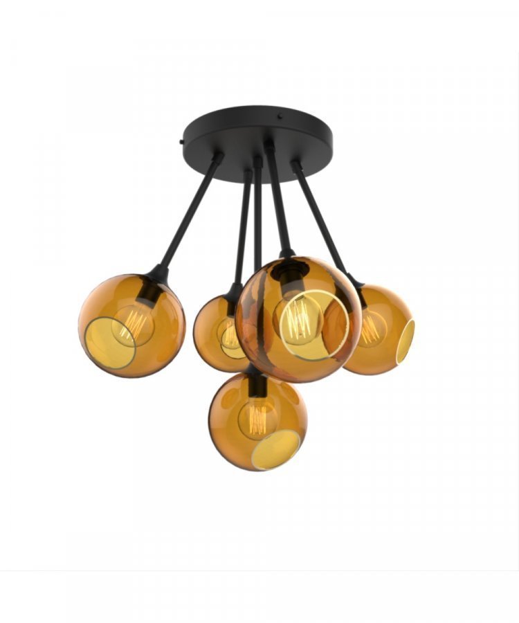 Design: Design By Us. Konsepti: Design By Usin Ballroom Molecule on ainutlaatuinen ja koristeellinen kattovalaisin. Se on valmistettu puhalletusta lasista ja koristeltu käsin maalatulla messinkireunuksella. Ballroomin elegantti ja erottuva ulkoasu tekee siitä täydellisen sinulle, joka etsit uutta valaistusta tuomaan kotiisi hieman jännitystä. Ballroom Molecule sopii erinomaisesti käytäville, olohuoneeseen tai mihin tahansa muualle kodissasi. Tämä valaisin on saatavilla viidessä eri värissä – violetti, keltainen, ruusu, savu ja armeijan vihreä. Se on saatavilla joko mustalla tai messinkisellä varrella. Huomioi, että puhallettu lasi voi sisältää pieniä kuplia. Yksikään sävy ei ole identtinen.