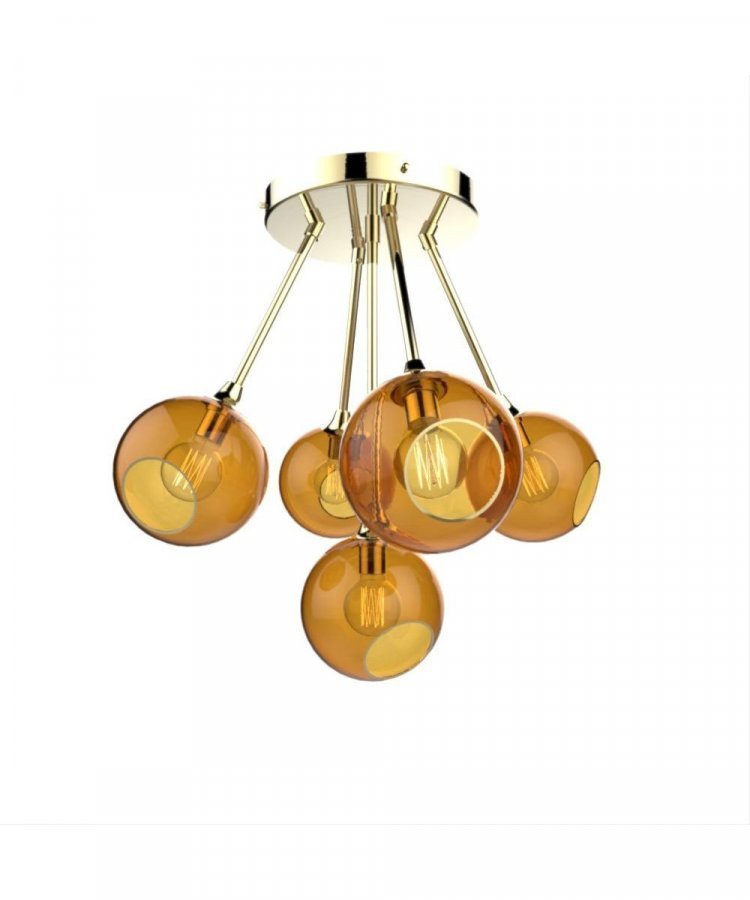 Design: Design By Us. Konsepti: Design By Usin Ballroom Molecule on ainutlaatuinen ja koristeellinen kattovalaisin. Se on valmistettu puhalletusta lasista ja koristeltu käsin maalatulla messinkireunuksella. Ballroomin elegantti ja erottuva ulkoasu tekee siitä täydellisen sinulle, joka etsit uutta valaistusta tuomaan kotiisi hieman jännitystä. Ballroom Molecule sopii erinomaisesti käytäville, olohuoneeseen tai mihin tahansa muualle kodissasi. Tämä valaisin on saatavilla viidessä eri värissä – violetti, keltainen, ruusu, savu ja armeijan vihreä. Se on saatavilla joko mustalla tai messinkisellä varrella. Huomioi, että puhallettu lasi voi sisältää pieniä kuplia. Yksikään sävy ei ole identtinen.