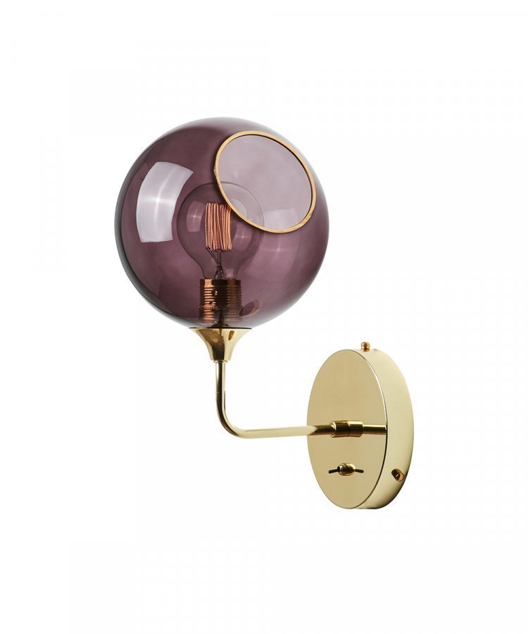 Design: Design By Us. Konsepti: Design By Usin Ballroom The Wall on ihana ja dynaaminen seinävalaisin sekä uusin Ballroom-perheen jäsen. Ballroomin yksinkertainen tyylikkyys tekee siitä täydellisen valaisimen sinulle, joka tarvitset seinävalaisinta luomaan viihtyisän tunnelman pitkille käytäville tai kodin pimeisiin tiloihin. Tämä seinävalaisin on saatavilla violetilla tai savuisena lasina kultaisella reunuksella ja mustalla tai messinkisellä pohjalla varustettuna. Voit valita pohjaksi joko 37cm tai 57 cm. Huomioi, että puhallettu lasi voi sisältää pieniä kuplia eikä yksikään sävy ole identtinen.
