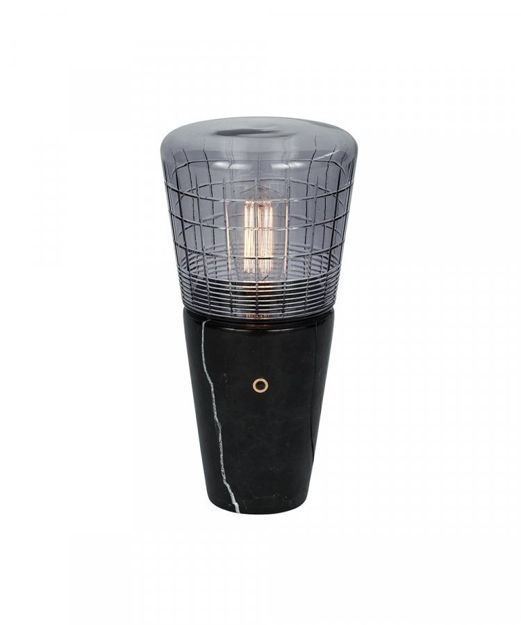 Design: Design By Us. Konsepti: Blender- pöytävalaisin on ainutlaatuinen ja dynaaminen valaisin, joka ansaitsee erityisen – ja näkyvän – paikan kotonasi. Blender- valaisimessa on raaka, mutta tyylikäs muotoilu, joka tekee siitä täydellisen valinnan sinulle, joka tarvitset pöytävalaisinta luomaan viihtyisän ilmapiirin kotiisi. Tässä pöytävalaisimessa on musta marmorinen jalusta, savun sävyinen lasi sekä sisällä teräsverkot, jotka erottavat Blenderin muista pöytävalaisimista.