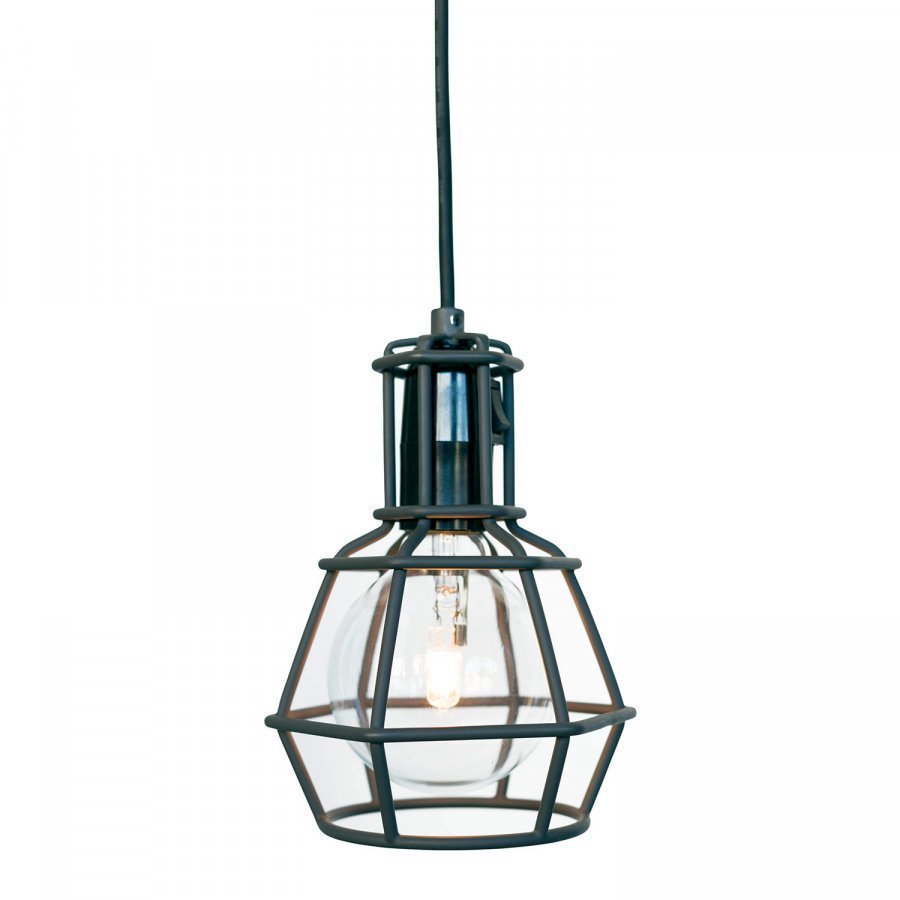 Work valaisin merkiltä Design House Stockholm. Valaisimen on suunnitellut designstudio From Us With Love. Moderni versio perinteisestä työmaalampusta. Valaisimen voi ripustaa perinteisesti kattoon tai jättää rennosti pyödälle kyljelleen. Muovipäällysteinen johto, himmennin. Valaisimessa on pistotulppa, eli valaisin kytketään normaaliin pistorasiaan. Toimitetaan lahjapakkauksessa.