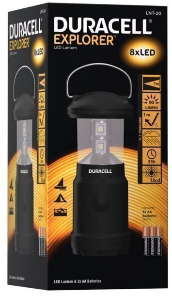 DURACELL LED myrskylyhty, EXPLORER LNT-20, Roiskevesitiivis, 8 x Super Clear LED, 90 lumenea, valoteho 7m, 13cd, 3 x AA paristo (sis. pakkaukseen)