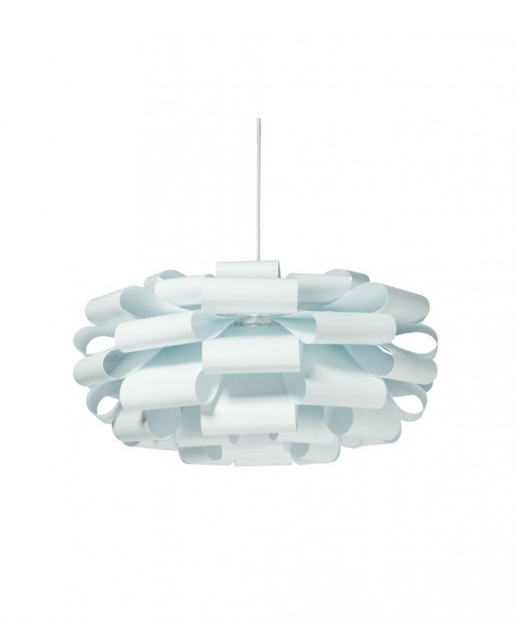 Design: Frank Kerdil for Dyberg Larsen. Konsepti: Kerdil 312 Curly Riippuvalaisin on jännittävä muunnelma klassisesta Pineapple riippuvalaisimesta rakennettuna tiiviimmän kehikon ympärille. 312 -versio on varustettu pehmeillä ’muovikielillä’, ja varjostimen päällekkäiset osat varmistavat miellyttävän ja pehmeän valon. Valaisin on täydellinen esimerkki tanskalaisen suunnittelun perinteistä. Koko mallisto rakentuu käytännössä näkymättömän kiillotetusta akryylista valmistetun kehikon ympärille.