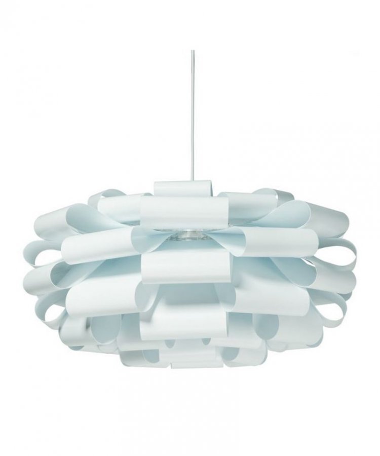 Design: Frank Kerdil for Dyberg Larsen. Konsepti: Kerdil 312 Curly Riippuvalaisin on jännittävä muunnelma klassisesta Pineapple riippuvalaisimesta rakennettuna tiiviimmän kehikon ympärille. 312 -versio on varustettu pehmeillä ’muovikielillä’, ja varjostimen päällekkäiset osat varmistavat miellyttävän ja pehmeän valon. Valaisin on täydellinen esimerkki tanskalaisen suunnittelun perinteistä. Koko mallisto rakentuu käytännössä näkymättömän kiillotetusta akryylista valmistetun kehikon ympärille.