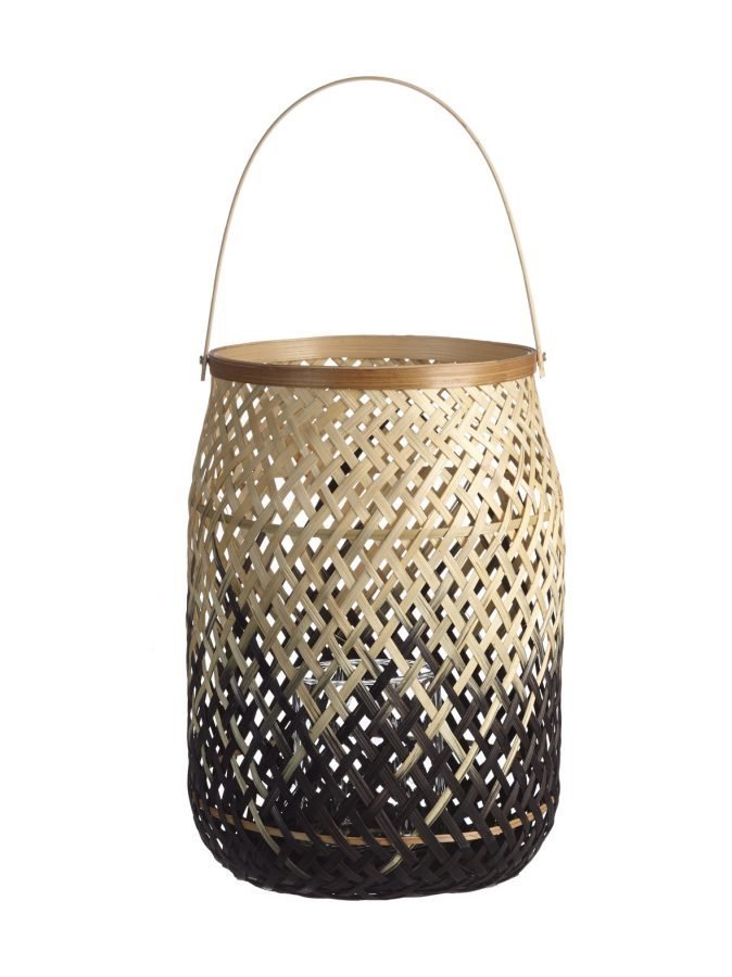 Tunnelmallisessa lyhdyssä on ripustuskahva ja lasinen kynttiläpidike. Materiaali on bambua. Korkeus on 37 cm ja halkaisija 20 cm.