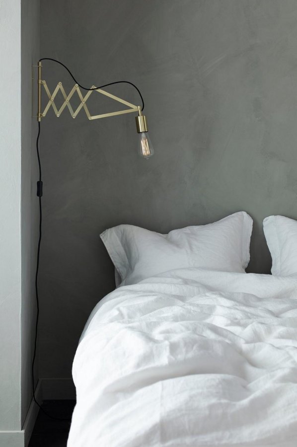 Seinävalaisin harjattua messinkiä. Valaisimen mitat: korkeus 22 cm, leveys 4 cm. Seinälevyn mitat: 20 x 2 cm. Valaisin on käännettävä ja ulos vedettävä, etäisyys seinästä 31-53 cm. Musta kangasjohto, jossa virtakytkin, johdon pituus 150 cm. Seinäpistoke. E27. Enintään 40 W. Lamppu ei mukana. Erilaisilla lampuilla on suuri vaikutus valaisimen tyyliin ja ulkonäköön. Kokeile ja löydä oma tyylisi!