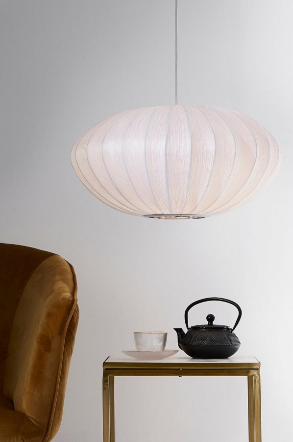 Kattovalaisin, jossa runko metallia ja päällinen ryppykäsiteltyä kangasta. Pohjassa aukko ja krominvärinen metallirengas. Kattokuppi metallia. Korkeus 25 cm, Ø 50 cm. Kokonaiskorkeus johto mukaan lukien 130 cm. E27. Enintään 40 W.