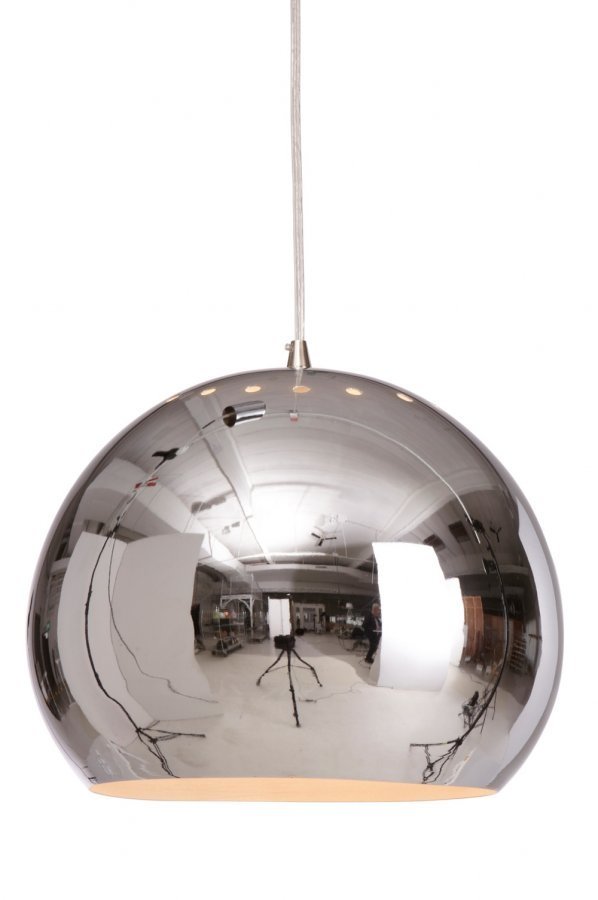 Kiiltävää metallia. K 23 cm. ø 28 cm. Johdon pituus 90 cm. E27. Enintään 40 W.