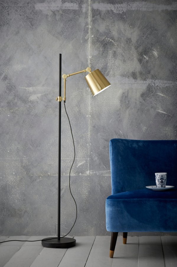 Metallinen lattiavalaisin, jossa metallivarjostin ja nivelletty varsi. Varjostimen voi sijoittaa haluamalleen korkeudelle. Valaisimen korkeus vähintään 139 cm, enintään 157 cm. Varjostimen halkaisija 15,5 cm, korkeus 15 cm. Kangaspäällysteinen johto, jossa lattiavirtakytkin. Iso lampunkanta E27. Enintään 40 W. Valonlähde ei ole mukana.