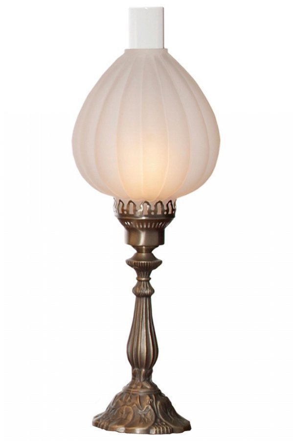 Lasikupu. Ø 16 cm. Jalka antiikkiharjattua metallia. Kokonaiskorkeus 48 cm. E14, enintään 40 W.
