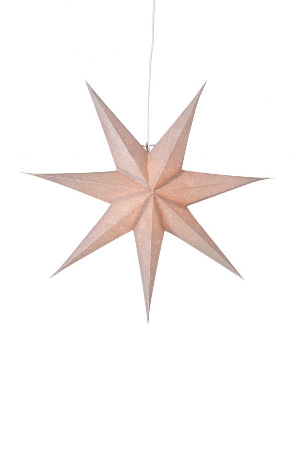 Pahvista valmistettu joulutähti. Koristeellinen rakenne, kiiltävä pinta ja rei itetty kuvio. Ø 60 cm. Enintään 25 W. Huom.! Lampunpidike, johto ja lamppu eivät sisälly toimitukseen.