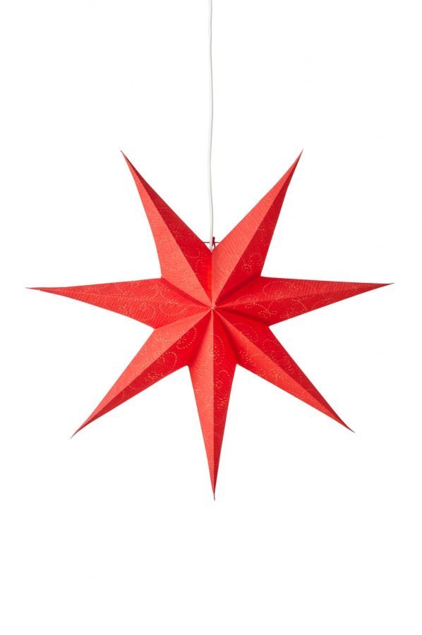 Pahvista valmistettu joulutähti. Koristeellinen rakenne, kiiltävä pinta ja rei itetty kuvio. Ø 60 cm. Enintään 25 W. Huom.! Lampunpidike, johto ja lamppu eivät sisälly toimitukseen.