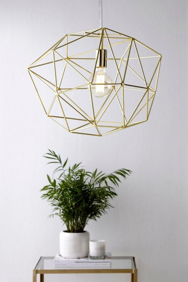 Vahvat tangot kuparipäällysteistä metallia. Vaijeri ja läpikuultava johto. Metallinen kattorasia. Johdon pituus 120 cm. Korkeus 42 cm. ø 48 cm. E27. Enintään 60 W. Enintään 100 mm:n kokoinen hehkulamppu.