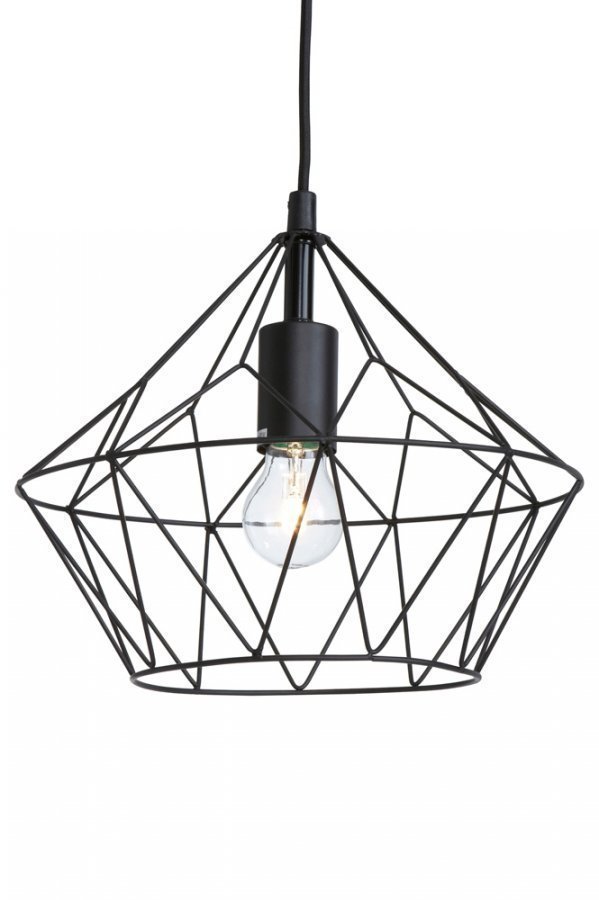 Kattovalaisin, joka muistuttaa muodoltaan timanttia. Napakoita maalattuja metallitankoja. Kangaspäällysteinen johto 90 cm. Korkeus 26 cm. ø 30 cm. Iso kanta E27. Enintään 60 W. Kattopistoke.