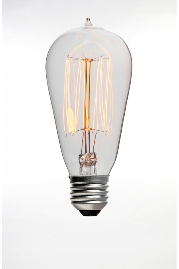 Hehkulamppu, jonka hehkulanka hiililankaa. Korkeus 13 cm. Leveys 6 cm. Teho 40 W. • Lampunkanta: Iso E27-kanta • Paloaika: jopa 2000 tuntia • Värilämpötila: 2700 K • Valovirta: 160 lm Energialuokka E Tarkoitettu koristevalaisimiin.