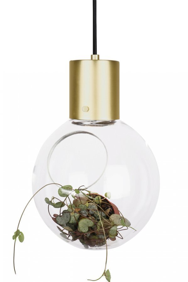 Ikkunavalaisin, jonka lasikuvussa viistoon leikattu aukko. Litteä pohja, voidaan käyttää myös pöytävalaisimena. Valitse itse, mitä haluat laittaa lasikuvun sisälle! Harjatun messingin- tai krominväriset tai matta mustat detaljit. Valaisimen korkeus 30 cm, ø 20 cm. Musta kangaspäällysteinen johto, jossa virtakytkin ja seinäpistoke. Johdon pituus 3,5 m. Pieni lampunkanta E14. Enintään 40 W. Valonlähde ei ole mukana. Erityylisillä valonlähteillä voit muutella valaisimen ulkonäköä oman makusi mukaan.