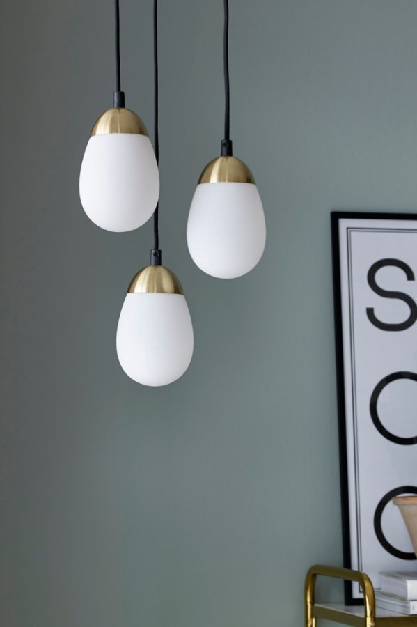 Ikkunavalaisin, jonka kupu mattapintaista valkoista lasia ja yläosa messinginväristä metallia. Korkeus 17 cm, ø 11 cm. Musta kangaspäällysteinen johto, jossa seinäpistoke, johdon pituus 350 cm. Pieni lampunkanta E14. Enintään 40 W.