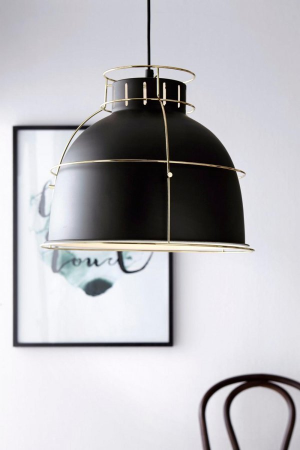Metallia ja maalattua peltiä. Korkeus 35 cm. ø 40 cm. Johdon pituus 105 cm. E27. Enintään 60 W.