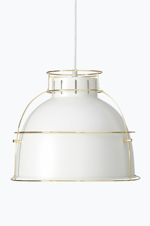 Metallia ja maalattua peltiä. Korkeus 35 cm. ø 40 cm. Johdon pituus 105 cm. E27. Enintään 60 W.