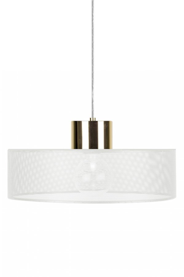 Net-kattovalaisin, jossa reiitetty mattametallivarjostin. Kontrastivärinen yläosa. Läpikuultava johto. Halkaisija 40 cm. Korkeus 20 cm. Lampunkanta E27. Enintään 60 W. Design: Patrick Hall.