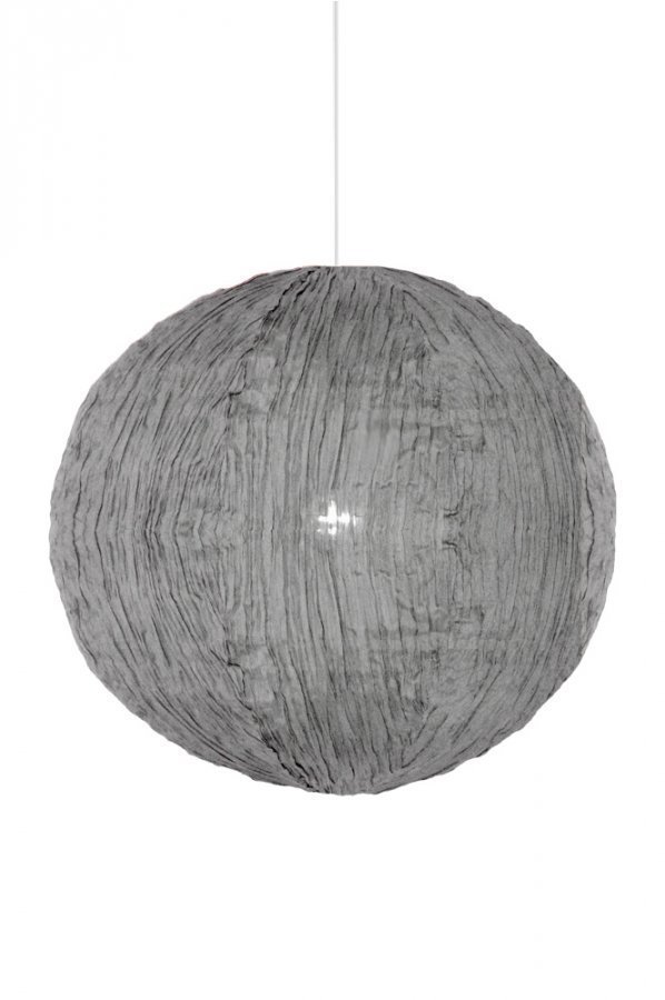 Varjostin rypytettyä puuvillaa, joka luo tehokkaita kontrasteja. Riisipallomainen rakenne (ripustin mukana). Halkaisija 45 cm. Korkeus 45 cm. Lampunpidike E27. Enintään 60W.