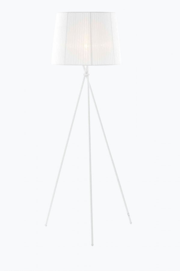 Kolmehaarainen jalka metallia. Varjostin organzaa. K 158 cm. Ø 50 cm. E27. Enintään 60 W.