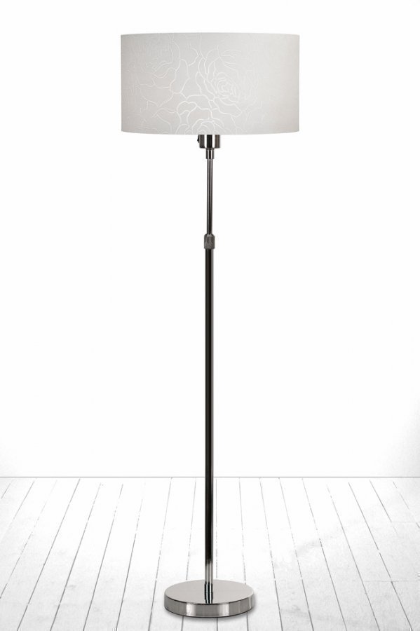 Lattiavalaisin, jonka varjostin valkoista puuvillaa. Krominvärinen jalka, jonka korkeutta voi säätää. Läpikuultava johto, katkaisin lampunkannassa. Korkeus 132170 cm. Halkaisija 42 cm. Lampunkanta E27. Enintään 60W.