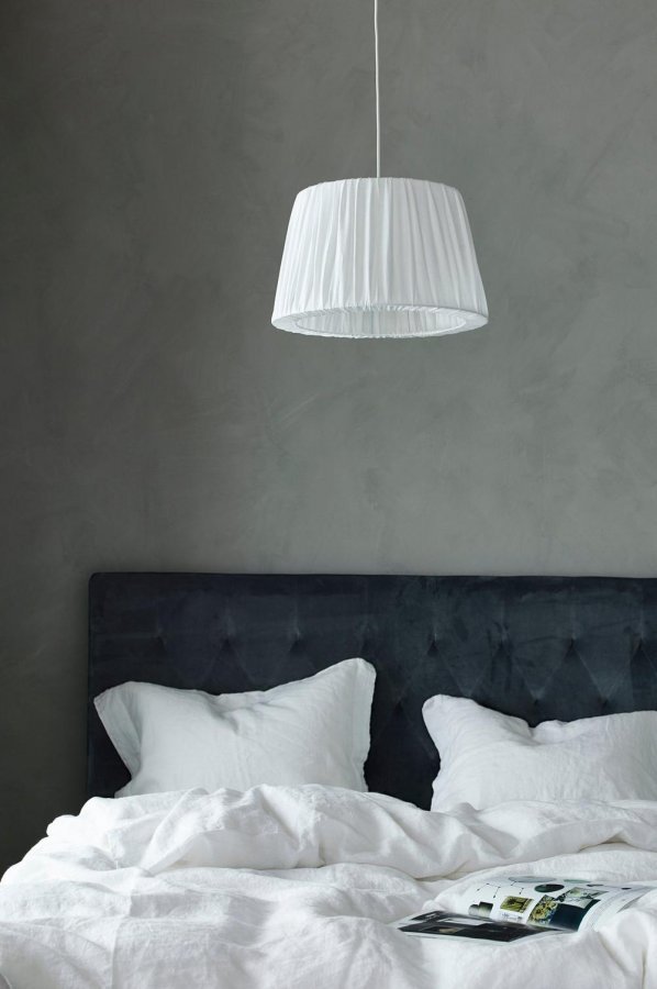 Romanttinen kattovalaisin, jossa poimutettu, hieman eläväpintainen pellavavarjostin. Korkeus 24 cm, ø 40 cm. Johdon pituus 1 m. Iso kanta E27. Enintään 60 W. Kattopistoke.