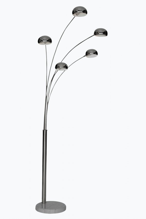 Viisihaarainen valaisin kromipäällysteistä metallia. Himmennin. Marmorisen tai kuparisen pohjalevyn halkaisija 35 cm. Korkeus 208 cm. Leveys 115 cm. 5 x E14. Enintään 5 x 40 W. Toimitetaan osina. Rahtipaino 42 kg. Tarkista rahtimaksu Toimitus-välilehdeltä.