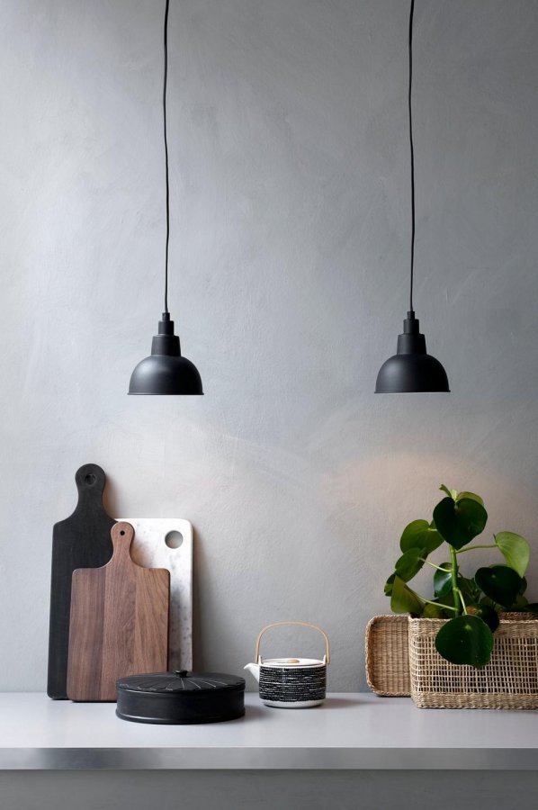 Ikkunavalaisin. Mattapintaiseksi maalattu metallivarjostin, jossa valkoinen kiiltävä sisäpinta. Varjostimen korkeus n. 18 cm, halkaisija n. 15 cm. Johdossa virtakytkin ja seinäpistoke, johdon pituus 3,5 m. Mustassa valaisimessa musta johto, harmaassa läpikuultava johto. Pieni lampunkanta E14. Enintään 40 W. Lamppu ei mukana.