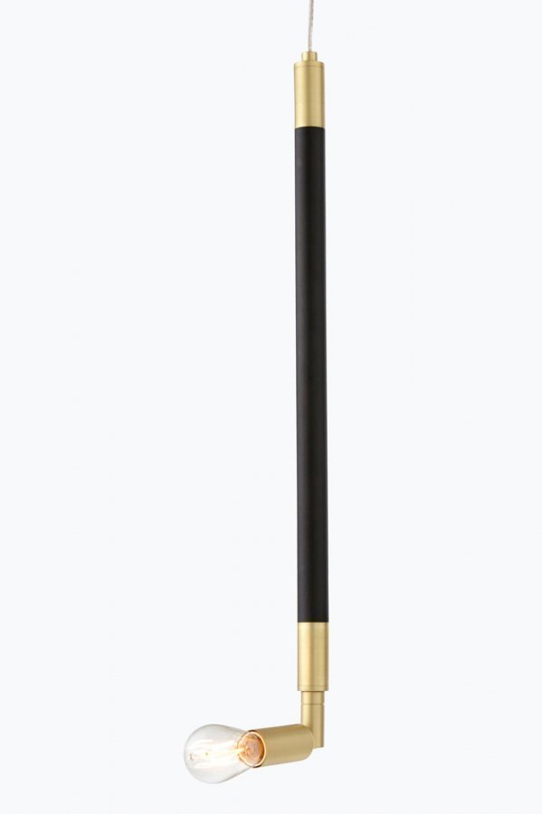 Kattovalaisin mattapintaiseksi maalattua metallia, messinkidetaljit. Erittäin pitkä johto, jonka ansiosta valaisinta voi käyttää myös esim. luku-, taulu- tai ikkunavalaisimena. Korkeus 63 cm, ø 2,5 cm. Läpikuultava johto, jossa virtakytkin ja seinäpistoke, johdon pituus 3,5 m. Pieni lampunkanta E14. Enintään 40 W. Valonlähde ei ole mukana. Erityylisillä valonlähteillä voit muutella valaisimen ulkonäköä oman makusi mukaan.