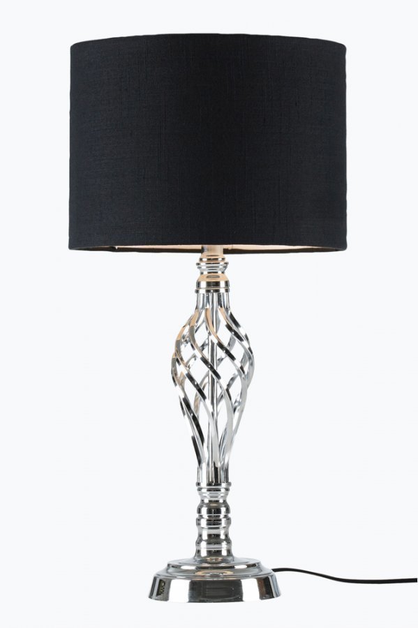 Metallijalka ja puuvillainen kangasvarjostin. Johdon pituus 150 cm. Korkeus 55 cm. ø 28 cm. E27. Enintään 40 W.