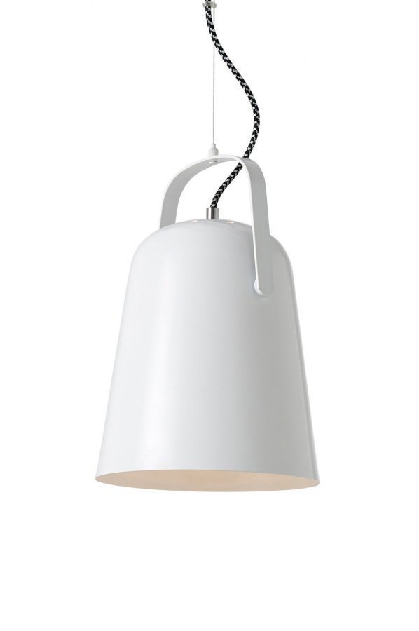 Kattovalaisin metallia. Korkeus 25,5 cm. Ø 22 cm. Näyttöä voi säätää hieman sivusuunnassa. Säädettävä ripustusvaijeri, enimmäispituus 1 m. Mustavalkoinen kangasjohto. E 27. Enintään 60 W.