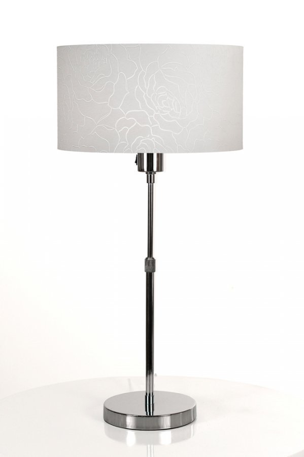 Pöytävalaisin, jossa puuvillavarjostin. Krominvärinen jalka, jonka korkeutta voi säätää. Läpikuultava johto, katkaisin lampunkannassa. Korkeus 5070 cm. Halkaisija 30 cm. Lampunkanta E27. Enintään 60W.