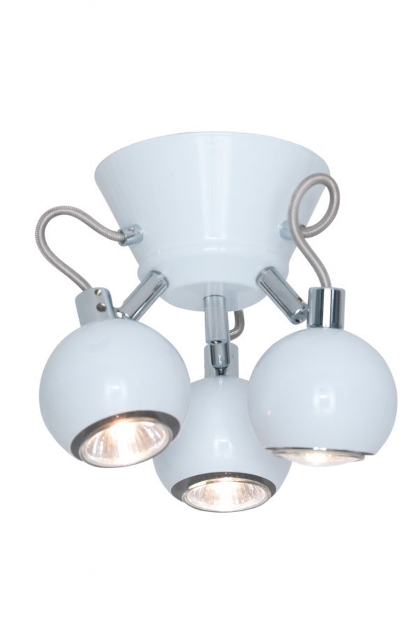 Maalattua metallia. Ø 20 cm. Korkeus 16 cm. Kunkin kuvun ø 6 cm. 3xGU10. Enintään 35 W. Lamput eivät mukana.