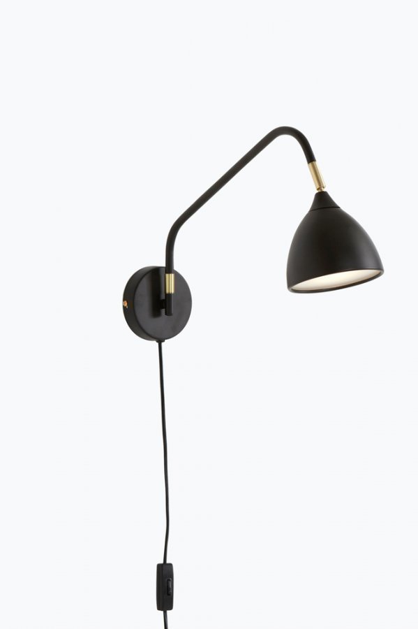 Seinävalaisin metallia. Säädettävä varjostin. . Virtakytkin johdossa. Syvyys 40 cm. Korkeus 31 cm. LED-lamppu GU10 (ei mukana).