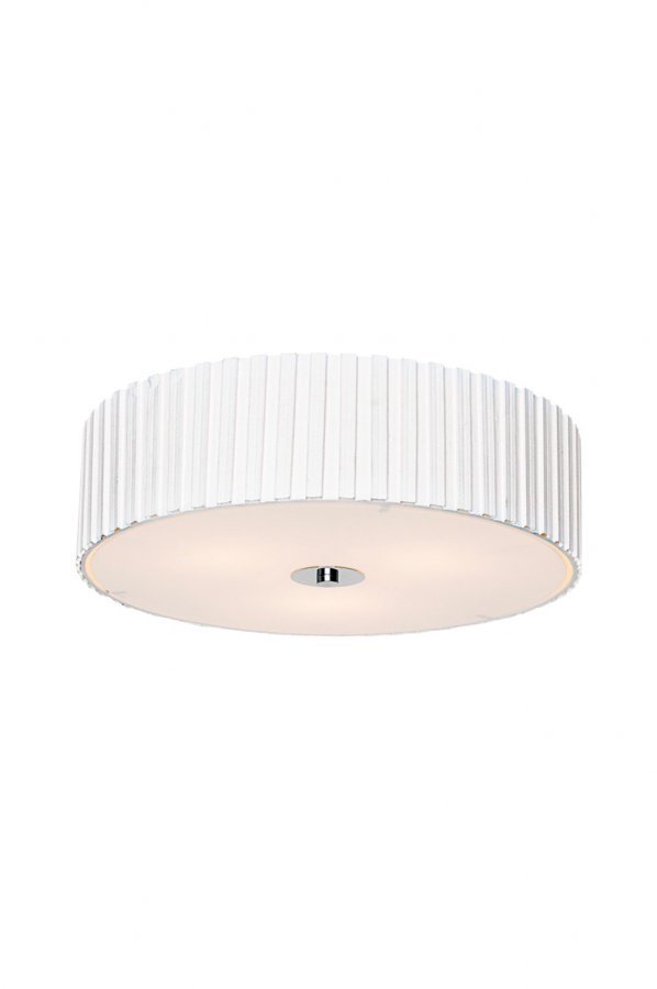 Metallirunko. Laskostettu puuvillakangasvarjostin. Alalevy karkaistua lasia. Ø 40 cm. K 11 cm. 3 x E14. Enintään 3 x 40 W.