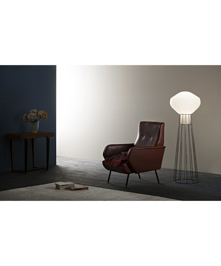 Design: Guillaume Delvigne for Fabbian. Konsepti: Tämän kokoelman takana on lahjakas nuori suunnittelija Guillaume Delvigne. Kokoelmaan kuuluu koristeellisia kiiltävästä, valkoisesta, käsin puhalletusta lasista valmistettuja valaisimia. Delvigne halusi luoda kohteen, joka on ilmaakin kevyempi. Valaisin, joka on niin kevyt, että se nousee itsekseen. Vaikka pöytä- ja lattiavalaisimissa on metallinen häkkiä muistuttava jalusta, valaisin antaa silti halutun kevyen vaikutelman. Valaisinten eleganssi ja yksinkertaisuus tekevät niistä erittäin hyvin soveltuvia mihin tahansa kotiin. Valaisimien keveys tarjoaa entistäkin enemmän mahdollisuuksia niiden käyttöön ja sijoitteluun.