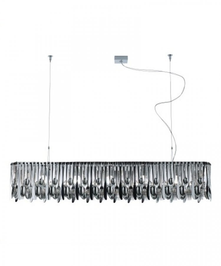 Design: Ali Siahvoshi for Fabbian. Konsepti: Ihastuttava koristeellinen kromivalaisin haarukoilla ja veitsillä. Valaisimia, jotka saavat sinut hymyilemään…. Niille, joilla on asennetta ja valaisinnälkää.