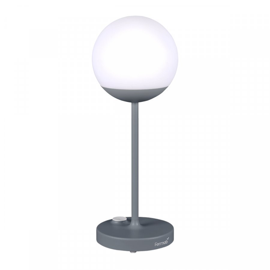 Fermobin Mooon!-valaisin tuo täysikuun taianomaista loistetta kotiin, puutarhaan, parvekkeelle, mökille tai minne ikinä tahdot sen kantaa. Tristan Lohnerin suunnittelema Mooon! on ulkokäyttöön sopiva, johdoton ja ladattava pöytävalaisin, jonka puhtaaksi hiottu muotokieli lainaa vaikutteita 1800-luvun ranskalaisista katuvalaisimista. Mooon!-valaisimen himmennettävä LED-valo toimii USB-kaapelilla ladattavalla akulla, jonka teho riittää kirkkaudesta riippuen 7-12 tunniksi. Valon värilämpötilaa voi vaihdella viileän valkoisen (6000K) ja lämpimän valkoisen (4000K) välillä. Johdottomuuden ansiosta Mooon!-valaisimen voi asettaa seisomaan vaikka seinähyllylle tai keskelle pöytää, ja ulkokäytössä se tuo lisävaloa ja -iloa niin puutarhajuhliin, iltapiknikeille kuin alkusyksyn pimenevien päivien hämyyn. Mooon!-kokoelman valaisimet on väritetty Fermobin ulkohuonekaluista tutuilla sävyillä, ja ne sopivatkin loistavasti yhteen Fermob-puutarhakalusteiden kanssa.
