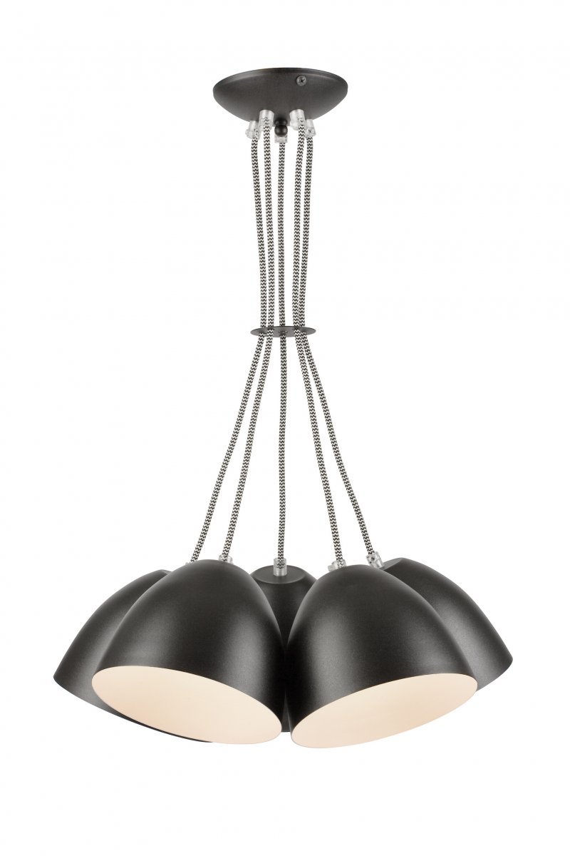 5-haaraisessa Livia-kattovalaisimessa on mustat metallikuvut ja mustavakoiset kangasjohdot.