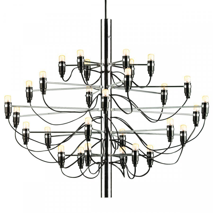 Italialaisen Flosin 2097/30 on Gino Sarfattin suunnittelema ainutlaatuinen kattokruunu vuodelta 1958. 2097/30-kattokruunun krominvärinen teräsrunko kannattelee ympärillään 30 polttimon muodostamaa tunnelmallista valopilveä. Polttimoiden johtoja ei ole yritetty häivyttää pois näkyvistä, vaan vapaasti aaltoilevat johdot asettuvat olennaiseksi osaksi kattokruunun ilmettä ja antavat sille pehmeän orgaanisen luonteen. Lopputulos on valloittava yhdistelmä perinteisten kattokruunujen mahtipontisuutta, 1950-luvun modernismia ja pelkistetyn teollista estetiikkaa. Halkaisijaltaan peräti 88 cm:n kokoinen 2097/30-kattokruunu kääntää katseet suuressakin tilassa, ja sen hallittu eleganssi istuu niin klassiseen kuin moderniin sisustukseen.