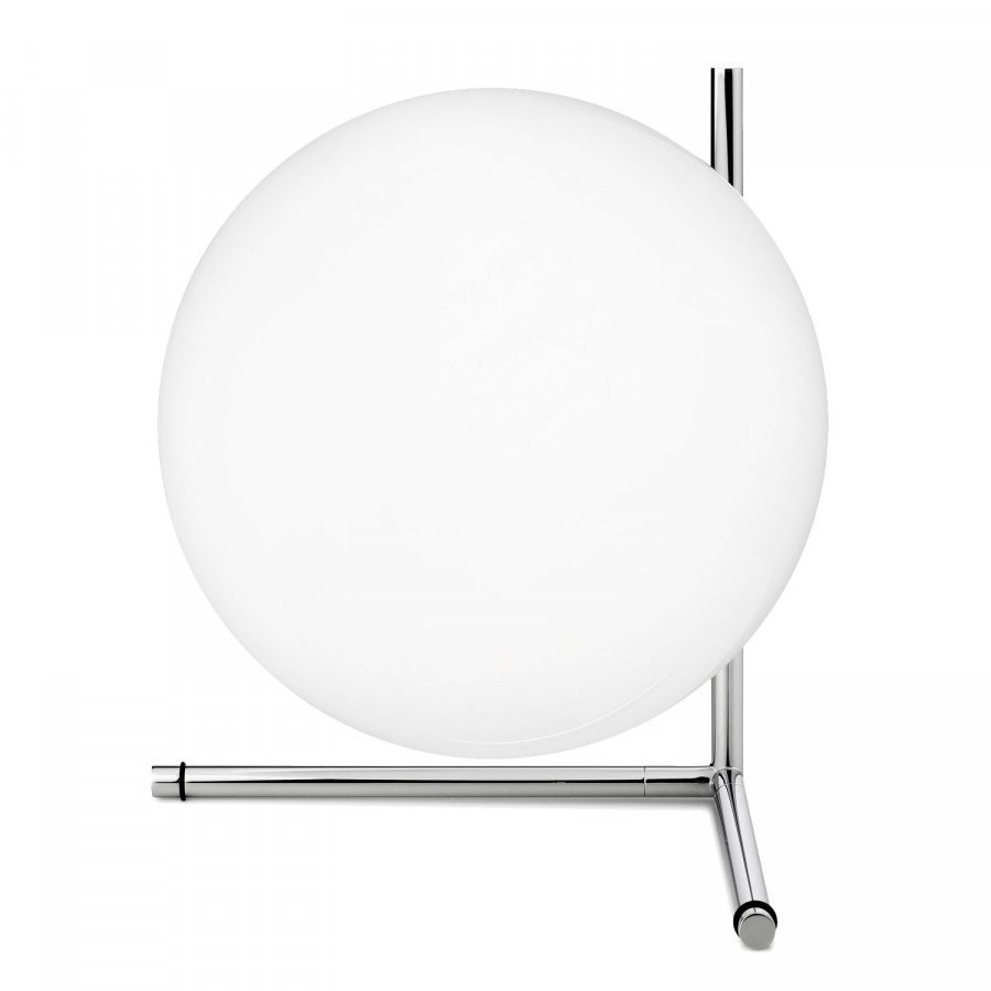 IC T2 pöytävalaisin merkiltä Flos. Ainutlaatuinen kromista valmistettu pöytävalaisin. Suupuhalletusta lasista valmistettu pyöreä kupuosa, heijastaa kauniin hajanaista valoa. Tämä tyylikäs valaisin on mukava sisustusyksityiskohta, joka samalla valaisee kauniisti ja tuo kodikasta hehkua. Messingin ja lasin yhdistelmä on fantastinen ja IC T2 valaisin tulee tuomaan iloa monen vuoden ajan. Huomaa, että lasiosa on valmistettu suupuhaltamalla ja lasissa voi esiintyä pieniä eroavaisuuksia. Valonlähde ei sisälly.