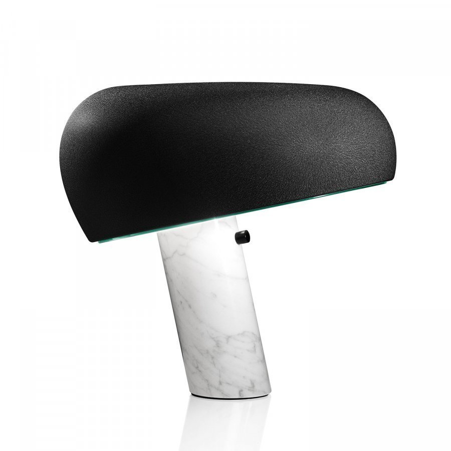Snoopy-pöytävalaisimen suunnittelivat Achille Castiglioni ja Pier Giacomo Castiglioni vuonna 1967. Varjostin metallia ja jalka marmoria.
