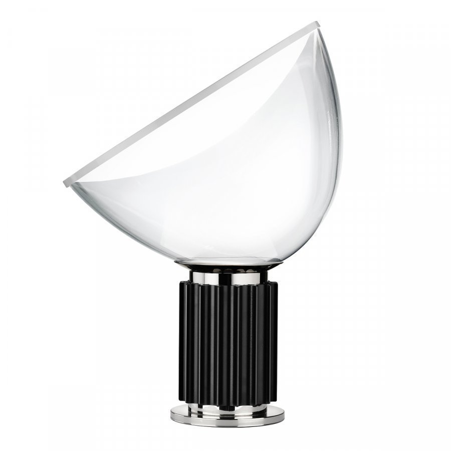 Italialaisen Flosin Taccia-pöytävalaisin on Achille ja Pier Giacomo Castiglionin taidonnäyte vuodelta 1962. Castiglionin veljekset leikkivät muotoilussaan usein erilaisilla perspektiiveillä, ja Taccia-valaisimen innoittajana on toiminut ajatus ylösalaisin käännetystä riippuvalaisimesta. Koristeellisen jalan varassa seisovan Taccian ylöspäin suuntautuva varjostin heijastaa ympärilleen kirkkaan LED-yksikön luomaa puhdasta valoa. Suurikokoinen varjostin on valmistettu suupuhalletusta lasista ja alumiiniheijastimesta, ja liikuteltavan rakenteen ansiosta valon suuntaa voi vaihdella tarpeen mukaan. Taccia on katseet kääntävä taideteos, jonka ajaton ilme täydentää tyylikkäällä tavalla monenlaisia tiloja ja sisustuksia.