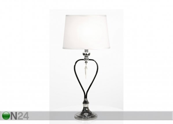 Pöytävalaisin kromatusta metallista, kupu puuvillatekstiiliä – koristeltu akryyliriipuksilla – läpinäkyvä johto katkaisijalla -… Lue lisää »
