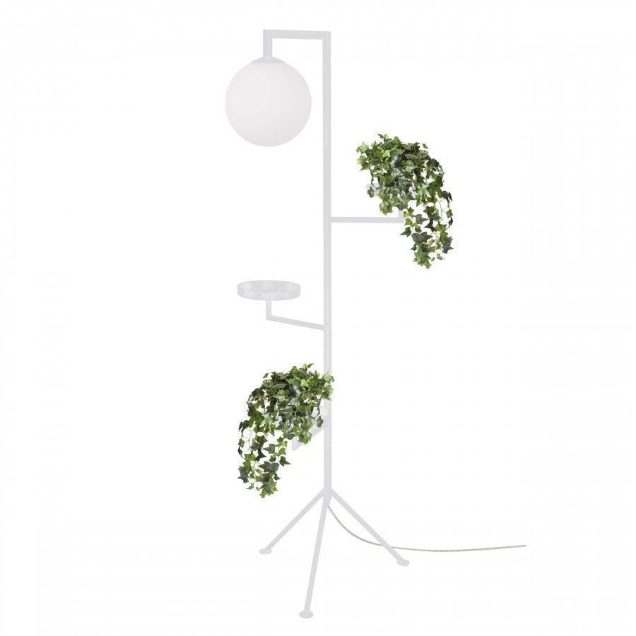 Jalkalamppu Globen Lightingilta. Ainutlaatuinen jalkalamppu, joka on sekä tyylikäs että käytännöllinen. Vain mielikuvitus on rajana keksiessäsi erilaisia tapoja käyttää ja sisustaa tällä valaisimella. Mattaväriset, säädeltävät tarjottimet ja opaalivalkoinen lasikupu. Valkoinen tekstiilijohto, jossa on lattiakatkaisija.