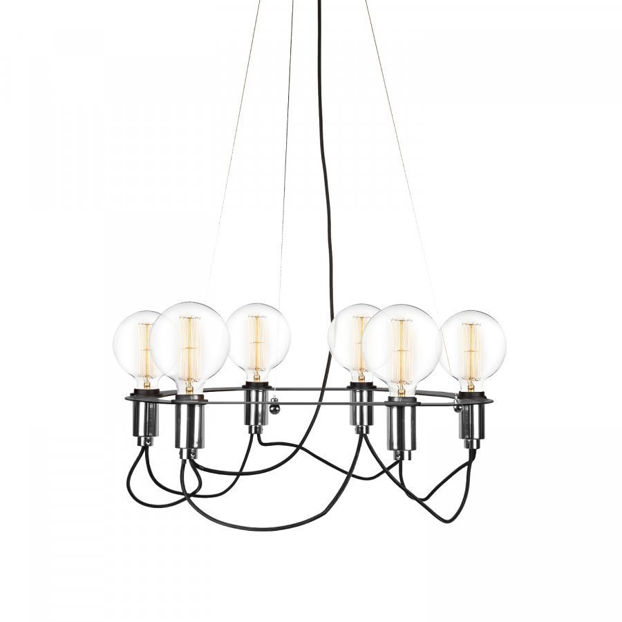 Cables kattokruunu merkiltä Globen Lightning, suunnittelija Patrick Hall. Kattokruunu 6 varrella, mustaksi lakatusta metallista tekstiilijohdolla ja kromisilla yksityiskohdilla. Kattokruunu on täydellinen ruokailutilaan ja tuo ylellistä tunnelmaa minne tahansa ripustettuna. Suositeltava valonlähde: E27 Max 6 x 60W (L204 tai E110)
